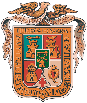 Descripción: Escudo francés moderno cuartelado y entado en punta: 1º de azur castillo de oro mazonado de sable y superado de una llave también de oro; 2º de gules un castillo con escala de oro mazonado de sable y superado de una luna creciente también de oro; 3º de gules un castillo de oro mazonado de sable; 4º de plata una granada de oro mazonada de sable, rajada y frutada de gules; 5º entado en punta de plata una cruz de San Jorge; 6º sobre el todo un escudete de forma afrancesada moderna de sinople con un yugo, una pala y una horca formando un aspa, y una colmena con abejas, puestos en palo y todo de oro; 7º la bordura de oro cargada con la inscripción «Muy Leal, Patriótica y Laboriosa villa de Huércal-Overa» en letras de sable. Al timbre, un águila de su color, sombreada, azorada y colgando de su pico una cinta de plata ondulante cargada de la inscripción «Exención de Villazgo 3 de Marzo de 1668» en letras de oro.